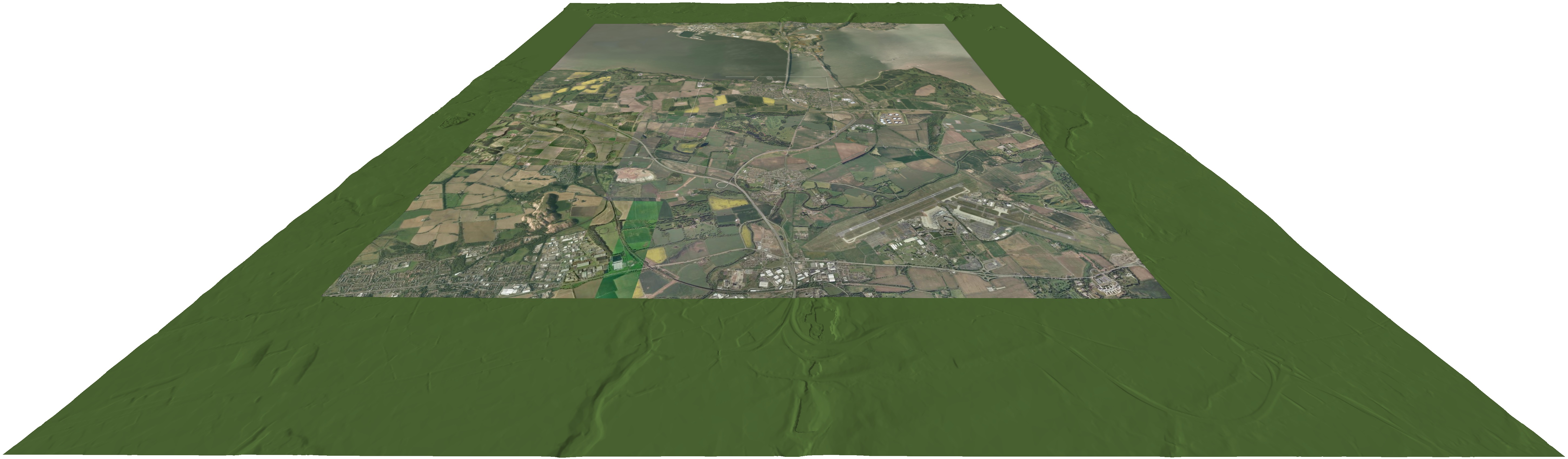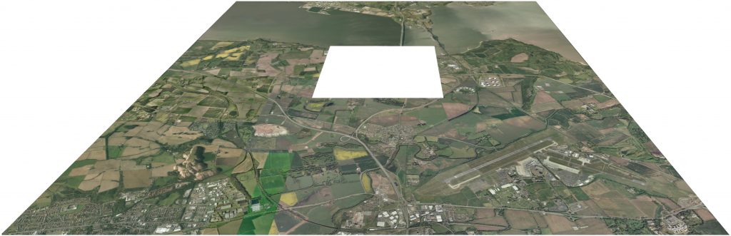 This option is made up with a base 3D terrain model (15Km x 15Km area) with an O.S. raster map (15Km x 15Km area) draper over it to give location reference.